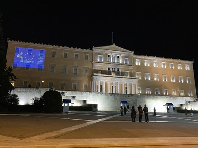 Η πανηγυρική συνεδρίαση έκλεισε με φωταγώγηση της πρόσοψης του κτιρίου της Βουλής με το λογότυπο της επετείου των 40 χρόνων.