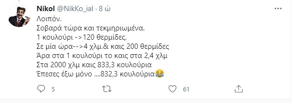 Αναλυτικά, η κ. Νοτοπούλου έγραψε στο Twitter: «Στα πόσα χιλιόμετρα βάδην καίγεται ένα κουλούρι Θεσσαλονίκης; Και στα πόσα... «έξυπνα μέτρα» καίγεται μια ανέμελη κυβέρνηση;».