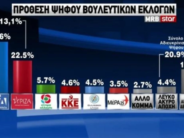 Δημοσκόπηση Pulse: 15 μονάδες μπροστά η ΝΔ από ΣΥΡΙΖΑ - Υπέρ του εμβολίου οι 4 στους 5
