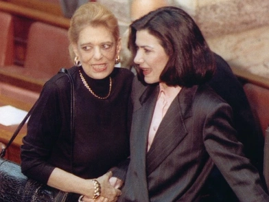 Η Γιάννα Αγγελοπούλου συνοδεύει την ανάρτησή της και με μια κοινή τους φωτογραφία από τη Βουλή. Η μεν Μελίνα Μερκούρη υπήρξε υπουργός Πολιτισμού του ΠΑΣΟΚ, η δε Γιάννα Αγγελοπούλου βουλευτής της Νέας Δημοκρατίας στην Α' Αθήνας.