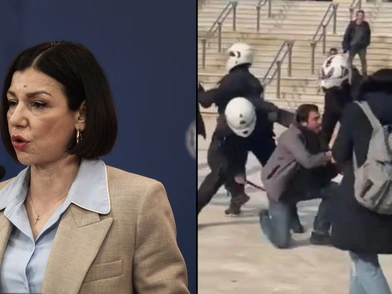 «Υπάρχει βίντεο που έχει δοθεί στη δημοσιότητα από χθες. Δείχνει την εικόνα ξυλοδαρμού ενός εκ των συλληφθέντων. Η κυβέρνηση δεν δρα ως κουκουλοφόρος. Υπάρχει περιστατικό που διερευνάται. Σε κάθε περίπτωση, πρόσωπα που φαίνονται στην κάμερα, είναι πρόσωπα που φαίνονται στην κάμερα», είπε ακόμα η κ. Πελώνη.