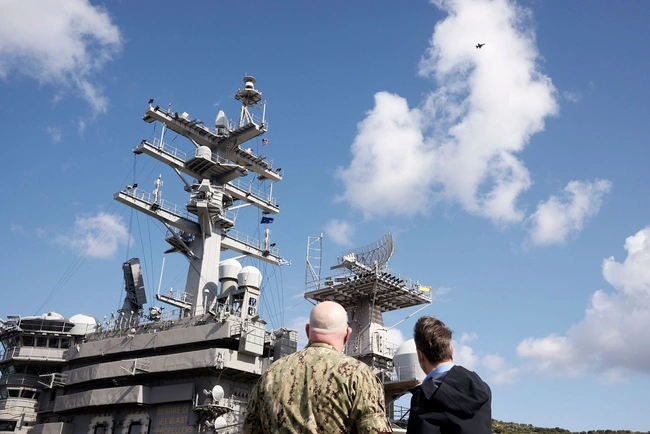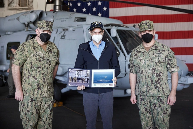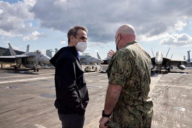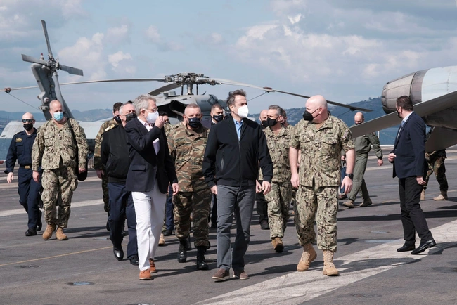 Το αεροπλανοφόρο του Ναυτικού των Ηνωμένων Πολιτειών USS Dwight D. Eisenhower (Αϊζενχάουερ) που είναι ελλιμενισμένο στη ναυτική βάση της Σούδας, επισκέφτηκε ο πρωθυπουργός, Κυριάκος Μητσοτάκης. «H στρατιωτική συνεργασία Ηνωμένων Πολιτειών - Ελλάδος βρίσκεται σε εξαιρετικά υψηλά επίπεδα», τόνισε ο κ. Μητσοτάκης.