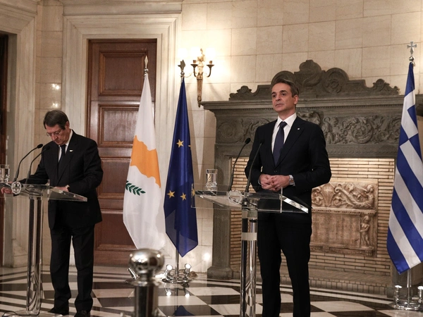 «Αύριο η Ένωση οφείλει να επιμείνει στην αξιόπιστη εφαρμογή της συμφωνημένης από όλους πολιτικής της διττής προσέγγισης απέναντι στην Τουρκία», είπε ο κ. Μητσοτάκης μετά το τετ-α-τετ που είχε με τον Κύπριο πρόεδρο στο Μέγαρο Μαξίμου ενόψει και του Ευρωπαϊκού Συμβουλίου, όπου θα συζητηθεί η έκθεση Μπορέλ για τις ευρωτουρκικές σχέσεις.