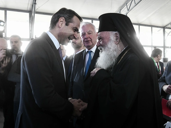 Λίγο μετά τις 11:00 ο πρωθυπουργός υποδέχτηκε τον αρχιεπίσκοπο στο Μέγαρο Μαξίμου.