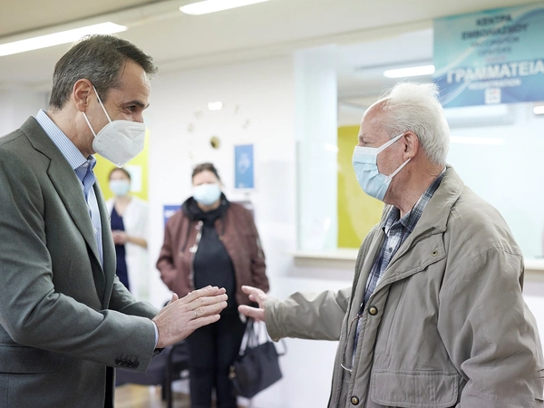 Ο Κυριάκος Μητσοτάκης συνομίλησε με πολίτες που περίμεναν τη σειρά τους για να εμβολιαστούν, ενώ ευχαρίστησε το υγειονομικό προσωπικό του Κέντρου για τις πολύτιμες υπηρεσίες φροντίδας που προσφέρουν.