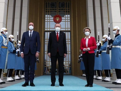 Παρά το φιλικό κλίμα μπρστά στις κάμερες η Ούρσουλα φον ντερ Λάϊεν και ο Σάρλ Μισέλ έστειλαν αυστηρό μήνυμα στον Ταγίπ Ερντογάν, ότι η θετική ατζέντα στον ευρωτουρκικό διάλογο δεν μπορεί να ενεργοποιηθεί αν προηγουμένως η Τουρκία δεν υποχωρήσει από την στρατηγική προκλήσεων στη μεσόγειο και αν δεν κάνει ουσιαστικά βήματα στο πεδίο των ανθρωπίνων δικαιωμάτων και της ελευθερίας της έκφρασης. “Ανησυχώ βαθιά για το γεγονός ότι η Τουρκία αποχώρησε από την Σύμβαση της Κωνσταντινούπολης, η οποία στοχεύει στην προστασία των γυναικών και των παιδιών απέναντι στην βία και σίγουρα εκπέμπει λάθος μήνυμα αυτή τη στιγμή”, είπε η Πρόεδρος της Κομισιόν, ενώ ο Πρόεδρος του Ευρωπαϊκού Συμβουλίου, υποστήριξε πως “εκφράσαμε στον πρόεδρο Ερντογάν την βαθιά μας ανησυχία για τις πρόσφατες εξελίξεις στην Τουρκία και την καταπάτηση συγκεκριμένα της ελευθερίας του λόγου, την στοχοποίηση πολιτικών κομμάτων και Μέσων Ενημέρωσης”.