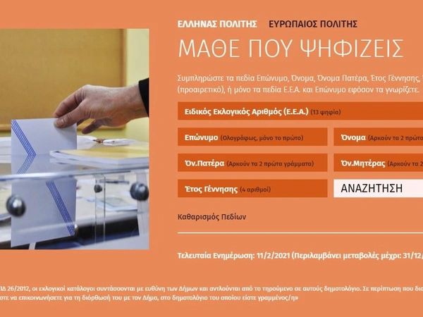Αναστάτωση προκάλεσε στα social media η επιγραφή «Εκλογές 2021» στη σελίδα «Μάθε που ψηφίζεις» της ιστοσελίδας του υπουργείου Εσωτερικών. Ο τίτλος κατέβηκε άμεσα μετά τα σχετικά σχόλια, ενώ το υπουργείο Εσωτερικών, εξέδωσε ανακοίνωση στην οποία αναφέρει: