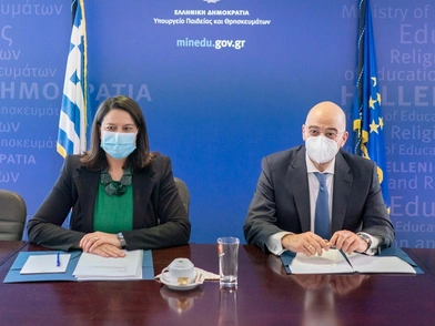 Ο υπουργός Εξωτερικών, Νίκος Δένδιας, επισκέφθηκε σήμερα το υπουργείο Παιδείας και Θρησκευμάτων, όπου είχε συνάντηση με την υπουργό Παιδείας και Θρησκευμάτων, Νίκη Κεραμέως. Σύμφωνα με την ανακοίνωση του ΥΠΕΞ, κατά τη συνάντησή τους, οι δύο υπουργοί συζήτησαν τα πολλαπλά πεδία συνεργασίας και κοινού ενδιαφέροντος και διαπίστωσαν ότι η εξωστρέφεια της τριτοβάθμιας εκπαίδευσης αποτελεί κοινή προτεραιότητα και στόχο.