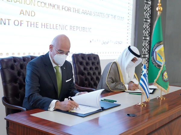 Η επίσκεψη των δύο υπουργών άρχισε με τη συνάντησή τους με τον γενικό γραμματέα του Συμβουλίου Συνεργασίας του Κόλπου Ναγιέφ μπιν Φάλαχ αλ Χαζράφ. Στο επίκεντρο της συνάντησης βρέθηκαν οι στενοί δεσμοί και η διαρκώς ενισχυόμενη συνεργασία της Ελλάδας με τις χώρες του Κόλπου, καθώς και οι πρόσφατες εξελίξεις στην ευρύτερη περιοχή, σύμφωνα με σχετική ανάρτηση του υπουργείου Εξωτερικών στο twitter. Στη συνέχεια ο υπουργός Εξωτερικών και ο γγ του Συμβουλίου Συνεργασίας του Κόλπου υπέγραψαν μνημόνιο κατανόησης για τη θεσμοθέτηση διαβουλεύσεων σε θέματα κοινού ενδιαφέροντος.