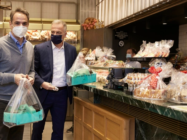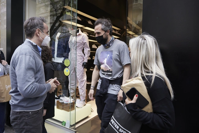 «Σας βλέπω χαμογελαστούς, αλλά χρειάζεται προσοχή», είπε ο κ. Μητσοτάκης απευθυνόμενος σε έναν ιδιοκτήτη καταστήματος. «Προσέχουμε, μακάρι να ανοίξουμε και κανονικά», απάντησε εκείνος. «Όλα καλά θα πάνε, πρέπει να πάμε βήμα βήμα».