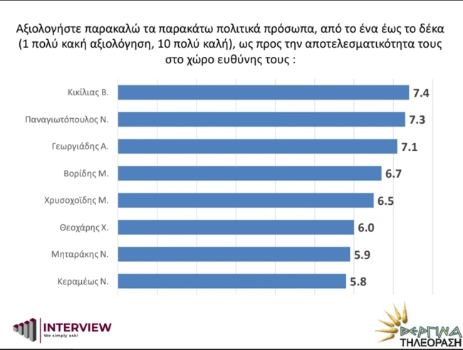 Ο Βασίλης Κικίλιας παραμένει ο δημοφιλέστερος υπουργός της κυβέρνησης Μητσοτάκη, όπως καταδεικνύει δημοσκόπηση της εταιρείας «INTERVIEW» για λογαριασμό του τηλεοπτικού σταθμού ΒΕΡΓΙΝΑ TV.