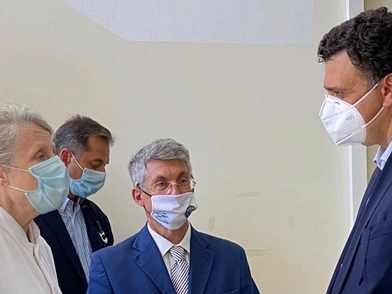 Στη συνέχεια, ο κ. Κικίλιας, συνοδευόμενος από τον δήμαρχο Σύρου-Ερμούπολης Νικόλαο Λειβαδάρα, τον διοικητή της 2ης Υγειονομικής Περιφέρειας Χρήστο Ροϊλό και τον διοικητή του Γενικού Νοσοκομείου Σύρου Μιχάλη Ζουλουφό, μετέβη στο Γ.Ν. Σύρου όπου συνομίλησε με το υγειονομικό προσωπικό και με πολίτες, ενώ επισκέφθηκε και τη Μονάδα Τεχνητού Νεφρού η οποία εξυπηρετεί 30 ασθενείς και συνεχάρη τη Διοίκηση και το προσωπικό του Νοσοκομείου για την εξαιρετική ποιότητα των παρεχόμενων υπηρεσιών υγείας.