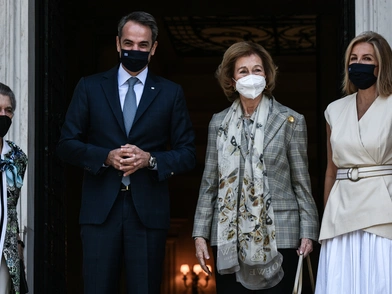 Ο πρωθυπουργός, Κυριάκος Μητσοτάκης, και η σύζυγός του Μαρέβα Γκραμπόφσκι - Μητσοτάκη υποδέχθηκαν στο Μέγαρο Μαξίμου τη Βασίλισσα της Ισπανίας Σοφία, η οποία συνοδευόταν από την αδερφή της Ειρήνη. Στην αρχή της συνάντησης ο πρωθυπουργός και η σύζυγός του παρουσίασαν τα έργα τέχνης νέων καλλιτεχνών που εκτίθενται περιοδικά στο Μέγαρο Μαξίμου και περιλαμβάνουν ποικίλες μορφές τέχνης: ζωγραφική, γλυπτική και φωτογραφία.