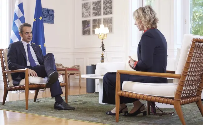 Alexia Kefalas: Καλησπέρα και καλώς ήρθατε στο France 24, στη συνέντευξη με τον Έλληνα Πρωθυπουργό Κυριάκο Μητσοτάκη, εδώ στο πρωθυπουργικό γραφείο. Καλή σας μέρα κύριε Πρωθυπουργέ. Kατά τη διάρκεια της Συνόδου Κορυφής του ΝΑΤΟ, η οποία θα πραγματοποιηθεί στις Βρυξέλλες, θα συναντήσετε τον πρόεδρο της Τουρκίας κ. Erdogan, καθώς η Τουρκία είναι επίσης μέλος του ΝΑΤΟ όπως και η Ελλάδα. Δεν είναι η πρώτη φορά που συναντιέστε, αλλά γίνεται μετά από μια έντονη περίοδο δυσκολιών, ιδιαίτερα στο νότιο τμήμα του Αιγαίου. Το περασμένο καλοκαίρι, η ένταση μεταξύ Τουρκίας - Ελλάδας κλιμακώθηκε λόγω των σχεδίων της Τουρκίας για γεωτρήσεις στη Μεσόγειο. Τι θα συζητήσετε με τον κ. Erdogan;