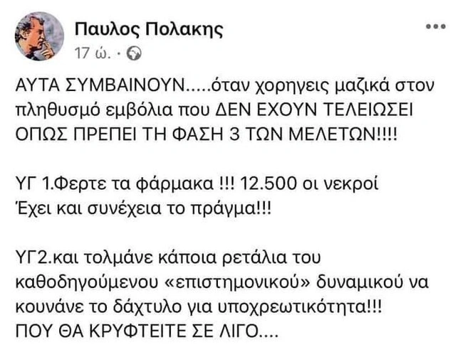 «ΑΥΤΑ ΣΥΜΒΑΙΝΟΥΝ.....όταν χορηγεις μαζικά στον πληθυσμό εμβόλια που ΔΕΝ ΕΧΟΥΝ ΤΕΛΕΙΩΣΕΙ ΟΠΩΣ ΠΡΕΠΕΙ ΤΗ ΦΑΣΗ 3 ΤΩΝ ΜΕΛΕΤΩΝ!!!!