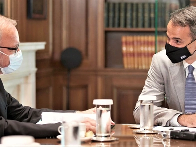 Βέβαιος για τις προοπτικές ανάκαμψης της ελληνικής οικονομίας εμφανίστηκε ο Κυριάκος Μητσοτάκης κατά τη συνάντησή του με τον πρόεδρο της Ευρωπαϊκής Τράπεζας Επενδύσεων (ΕΤΕπ) Βέρνερ Χόιερ στο Μέγαρο Μαξίμου. «Είχαμε μια μακρά συνεδρίαση του Υπουργικού Συμβουλίου στην οποία ο Υπουργός Οικονομικών παρουσίασε τις προοπτικές της ελληνικής οικονομίας για το τρέχον έτος και τα επόμενα χρόνια. Είμαστε στην ευχάριστη θέση να αναφέρουμε ότι αισθανόμαστε βέβαιοι ότι θα επιστρέψουμε σε μια πορεία πολύ ισχυρής ανάπτυξης. Όπως γνωρίζετε, ήμασταν μία από τις πρώτες χώρες που λάβαμε την έγκριση για το Ταμείο Ανάκαμψης και Ανθεκτικότητας και χαιρόμαστε που θα διαδραματίσετε κι εσείς ενεργό ρόλο, βοηθώντας μας στη διαχείριση των επενδύσεων» είπε.