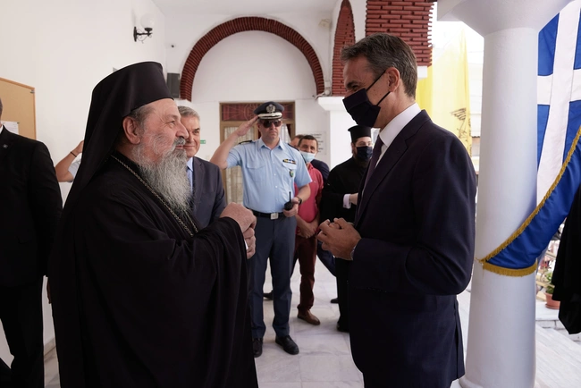 Ο κ. Μητσοτάκης κατευθύνθηκε στο απέναντι πεζοδρόμιο όπου ήταν συγκεντρωμένοι κάτοικοι της Δράμας ανάμεσά τους και αρκετοί νέοι. Τους χαιρέτισε, τους ευχήθηκε χρόνια πολλά και είχε σύντομη συνομιλία μαζί τους όπου τους παρότρυνε με έμφαση «να εμβολιαστείτε όλοι».
