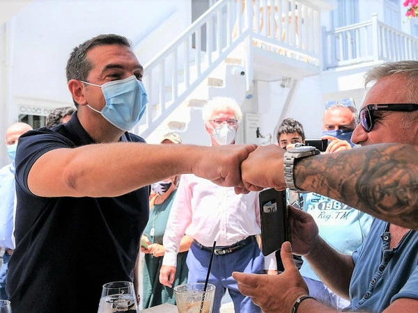 Ο κ. Τσίπρας βρέθηκε στο Νησί των Ανέμων και περπάτησε στα Ματογιάννια όπου χαιρέτισε τους πολίτες και συνομίλησε μαζί τους για το «μίνι» lockdown που επιβλήθηκε στη Μύκονο για τον περιορισμό της διασποράς του κορονοϊού. Ο κ. Τσίπρας σταμάτησε σε γνωστό εστιατόριο και αντίκρισε έναν συμμαθητή του από το Λύκειο. Του είπε «ίδιος είσαι» για να πάρει την απάντηση «εσύ έχεις αλλάξει, έχεις ασπρίσει!». Τότε ο κ. Τσίπρας θυμήθηκε την πενταήμερη που είχαν πάει στη Ρόδο και... πετούσαν καρέκλες στην πισίνα και τσακώνονταν με μαθητές άλλων σχολείων. «Πλακωνόμασταν με όλα τα σχολεία, θυμάσαι; Χαμός», του απάντησε ο συμμαθητής του.
