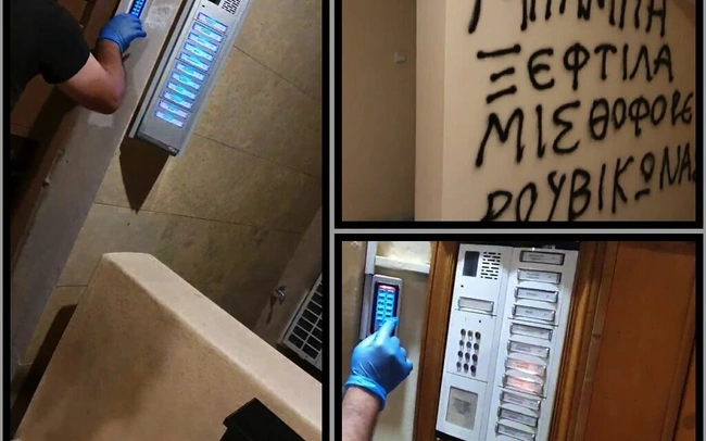 Καταδρομική από την αναρχική συλλογικότητα «Ρουβίκωνας» έγινε χθες (22/7) το βράδυ στην πολυκατοικία που διαμένει ο βουλευτής της Νέας Δημοκρατίας Μπάμπης Παπαδημητρίου. Αίσθηση προκαλεί το γεγονός ότι παρότι υπήρχαν δύο πόρτες ασφαλείας, τα μέλη της ομάδας που μπήκε στο χώρο, γνώριζαν τους κωδικούς για να ανοίξουν και τις δύο πόρτες.