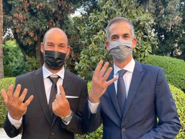 Οι δυό τους έβγαλαν μία αναμνηστική φωτογραφία με τον επί σειρά ετών αρχηγό του Ολυμπιακού να δείχνει με τα δάκτυλά του το «6» και ο κ. Μπακογιάννης το «4». Η εξήγηση ήρθε από τον δήμαρχο Αθηναίων: