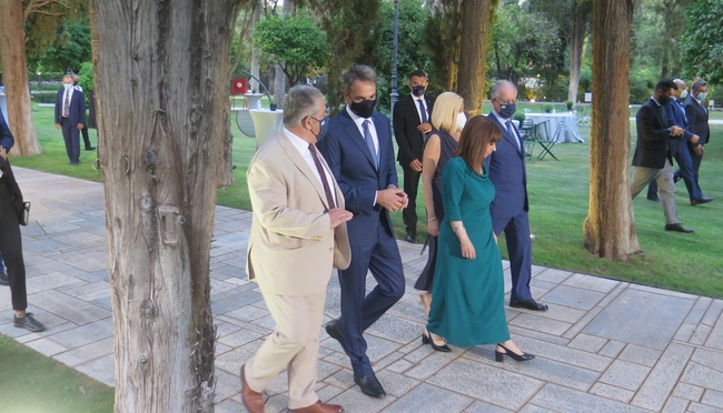 Στο επίκεντρο του ενδιαφέροντος βρέθηκε η συζήτηση της Προέδρου της Δημοκρατίας, Κατερίνας Σακελλαροπούλου, με τον Πρωθυπουργό Κυριάκο Μητσοτάκη, τον Πρόεδρο της Βουλής, Κώστα Τασούλα, τον Πρόεδρο του ΣΥΡΙΖΑ Αλέξη Τσίπρα, τον ΓΓ του ΚΚΕ Δημήτρη Κουτσούμπα, την Πρόεδρο του ΚΙΝΑΛ Φώφη Γεννηματά και τον Γραμματέα του ΜέΡΑ 25 Γιάνη Βαρουφάκη, στο γνωστό κιόσκι του Προεδρικού. Από την συνάντηση απουσίαζε ο πρόεδρος της Ελληνικής Λύσης, Κυριάκος Βελόπουλος, ο οποίος δεν παρευρέθηκε στη δεξίωση.