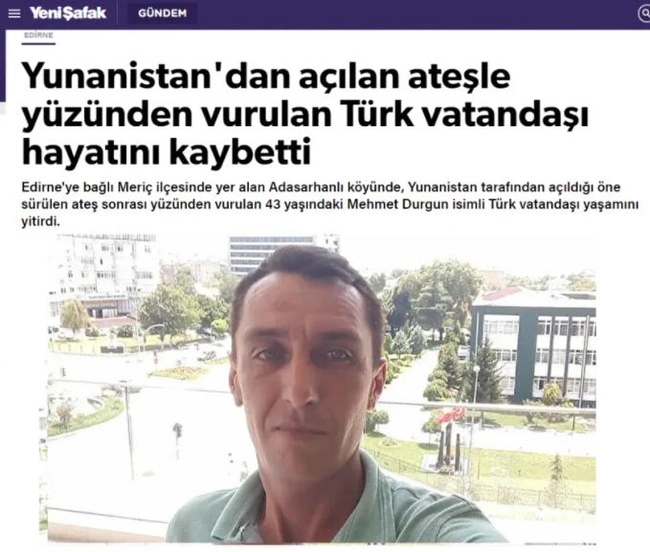 Σύμφωνα πάντα με τα τουρκικά δημοσιεύματα, το φερόμενο ως θύμα Μεχμέτ Ντουργκούν καθόταν με τον 60χρονο συγχωριανό του, Σουλεϊμάν Σενέρ, στην όχθη του ποταμού, όταν τον πυροβόλησαν στο πρόσωπο. Σύμφωνα με τον Σενέρ, που έσπευσε στο κοντινό χωριό όπου ενημέρωσε για το περιστατικό, ο Ντουγκούν πέθανε ακαριαία. Στο σημείο έφτασε ασθενοφόρο που μετέφερε τη σορό του στο νεκροτομείο του νοσοκομείου της Αδριανούπολης.