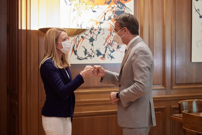 Στην ανάγκη προστασίας των συνόρων της Ελλάδας και της Ευρωπαϊκής Ένωσης με σεβασμό στα Ανθρώπινα Δικαιώματα και την ταυτόχρονη στήριξη από την ΕΕ των χωρών που βρίσκονται κοντά στο Αφγανιστάν, ώστε να εμποδιστούν οι ροές προσφύγων στην Ευρώπη, υπογράμμισε ο πρωθυπουργός Κυριάκος Μητσοτάκης, κατά τη συνάντησή του με την Α΄ αντιπρόεδρο του Ευρωπαϊκού Κοινοβουλίου Ρομπέρτα Μετσόλα στο Μέγαρο Μαξίμου.