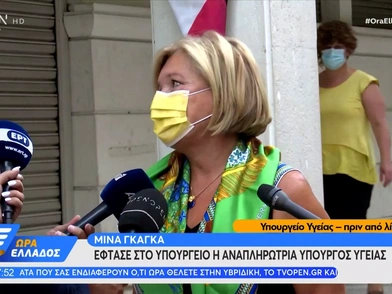 Νωρίς το πρωί της Τρίτης βρέθηκε στο υπουργείο Υγείας για να αναλάβει το χαρτοφυλάκιό της η Μίνα Γκάγκα. Η αναπληρώτρια υπουργός Υγείας λίγο μετά τις 7.30 το πρωί της Τετάρτης, 1 Σεπτεμβρίου, έφτασε στο γραφείο της και την υποδέχθηκαν στην είσοδο του υπουργείου δημοσιογράφοι, στους οποίους έκανε δηλώσεις.