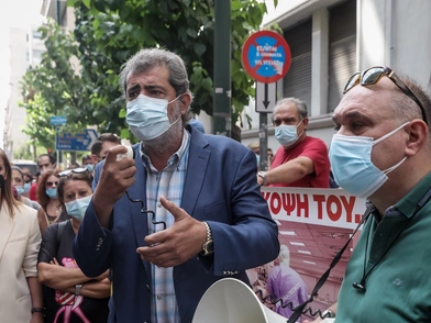 Υγειονομικοί διαδήλωσαν έξω από το υπουργείο Υγείας, με τον Παύλο Πολάκη και άλλους βουλευτές του ΣΥΡΙΖΑ, αντιδρώντας στην υποχρεωτικότητα των εμβολιασμών και την αναστολή καθηκόντων για ανεμβολίαστους επαγγελματίες υγείας.
