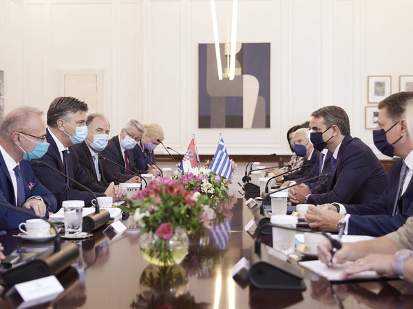 Ο πρωθυπουργός Κυριάκος Μητσοτάκης συναντήθηκε σήμερα (17/9) με τον πρωθυπουργό της Κροατίας, Andrej Plenković, στο περιθώριο της 8ης Συνόδου Κορυφής EUMED, που διοργανώνεται στην Αθήνα. Οι δύο ηγέτες επιβεβαίωσαν το εξαιρετικό επίπεδο των διμερών σχέσεων, συζήτησαν θέματα κοινού ενδιαφέροντος και τις προοπτικές εμβάθυνσης της συνεργασίας στο διμερές και περιφερειακό επίπεδο, με έμφαση τον οικονομικό τομέα. Οι δύο πρωθυπουργοί είχαν επίσης την ευκαιρία να ανταλλάξουν απόψεις για ζητήματα που αφορούν την Ευρωπαϊκή Ένωση, όπως η Διάσκεψη για το Μέλλον της Ευρώπης και το μεταναστευτικό, υπό το φως και των πρόσφατων εξελίξεων στο Αφγανιστάν. Ο κ. Μητσοτάκης και ο κ. Plenković υπογράμμισαν την προσήλωσή τους στην προώθηση της ευρωπαϊκής προοπτικής των Δυτικών Βαλκανίων και τη διατήρηση της ασφάλειας και της σταθερότητας στην ευρύτερη περιοχή της Νοτιοανατολικής Μεσογείου.