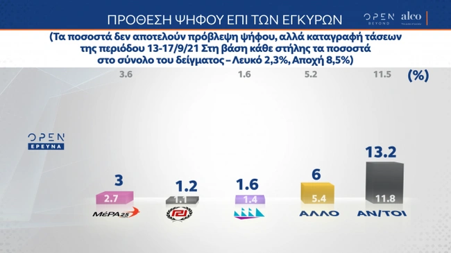 Ιδιαίτερο ενδιαφέρον παρουσιάζει το ερώτημα ποιο κόμμα ψηφίζουν όσοι δεν έχουν εμβολιαστεί. Σύμφωνα με τα στοιχεία της δημοσκόπησης, το 23% όσων δεν έχουν κάνει το εμβόλιο κατά του κoρονοϊού επιλέγουν ΣΥΡΙΖΑ και μόλις το 7% τη Νέα Δημοκρατία.