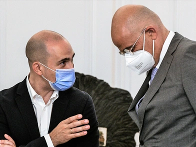 Λίγη ώρα μετά από το ξέσπασμα που είχε ο Νίκος Δένδιας στη Βουλή και πριν ο Κωνσταντίνος Μπογδάνος δεχθεί την «κόκκινη κάρτα» και διαγραφεί από την κοινοβουλευτική ομάδα της Νέας Δημοκρατίας, οι δύο άνδρες συναντήθηκαν εκ νέου στον διάδρομο της Βουλής.