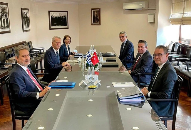 Ολοκληρώθηκε ο 63o γύρος των συνομιλιών Ελλάδας - Τουρκίας στην Αγκυρα, στη σκιά των τουρκικών προκλήσεων στην Ανατολική Μεσόγειο. Οι αντιπροσωπείες της Ελλάδας και της Τουρκίας έπιασαν το νήμα των διερευνητικών επαφών ως αφέθηκαν κατά τον 62ο γύρο που πραγματοποιήθηκε στις 16 Μαρτίου στην Αθήνα, προκειμένου να διερευνήσουν σημεία σύγκλισης για ενδεχόμενες μελλοντικές διαπραγματεύσεις αναφορικά με την οριοθέτηση της υφαλοκρηπίδας και της ΑΟΖ στο Αιγαίο και στην Ανατολική Μεσόγειο, βάσει του Διεθνούς Δικαίου.