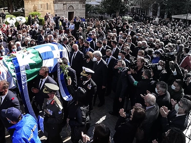Εν μέσω χειροκροτημάτων βγήκε από το παρεκκλήσι του Αγίου Ελευθερίου στη Μητρόπολη Αθηνών το φέρετρο με τη Φώφη Γεννηματά, το οποίο παραμένει σκεπασμένο με τρεις σημαίες, του ΠΑΣΟΚ, του ΚΙΝΑΛ και της Ελλάδας. «Στο καλό», «αθάνατη» φώναζε ο κόσμος που έχει συγκεντρωθεί στη Μητρόπολη Αθηνών για το τελευταίο αντίο στη Φώφη Γεννηματά ενώ ρίχνει λουλούδια πάνω στο φέρετρο. Στις 14:00 ξεκινά η εξόδιος ακολουθία στη Μητρόπολη και στη συνέχεια η Φώφη Γεννηματά θα ταφεί δίπλα στους γονείς της στο Α’ Νεκροταφείο Αθηνών. Τραγικές φιγούρες ο σύζυγός της, τα τρία παιδιά της και η αδερφή της, που είδε όλη την οικογένειά της να φεύγει από τη ζωή νικημένη από τον καρκίνο.