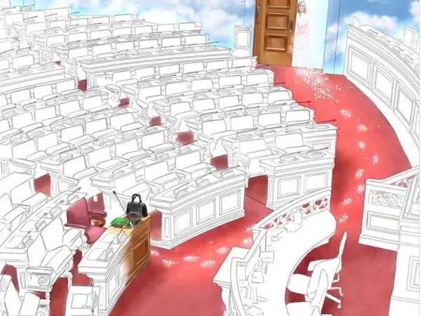Η Φώφη Γεννηματά βλέπει από την είσοδο της Βουλής το μόνο έδρανο που έχει χρώμα. Είναι το δικό της. Είναι η δική της θέση στον ουρανό.