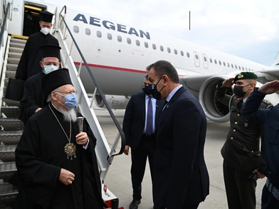 Ο υπουργός Εθνικής Αμυνας Νίκος Παναγιωτόπουλος εκπροσωπώντας την κυβέρνηση υποδέχθηκε σήμερα στον διεθνή αερολιμένα Αθηνών τον Οικουμενικό Πατριάρχη Βαρθολομαίο, ο οποίος αφίχθη από την Κωνσταντινούπολη με τακτική πτήση, αποδεχόμενος πρόσκληση της Εκκλησίας της Ελλάδος.