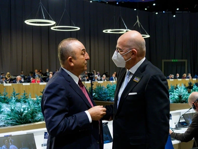 Στο περιθώριο της υπουργικής Συνόδου, ο Νίκος Δένδιας είχε σύντομο τετ α τετ με τον Μεβλούτ Τσαβούσογλου. «Θα το έλεγα κοινωνική χειραψία, όπως ξέρετε τον κ. Τσαβούσογλου τον ξέρω πάνω από 20 χρόνια, κατά συνέπεια, αυτονόητο ήταν ότι αφού βρισκόμασταν στον ίδιο χώρο και θα χαιρετιόμασταν και θα λέγαμε μερικά πράγματα». Σημειώνεται πως η τελευταία φορά που οι δυο άνδρες είχαν τετ-α-τετ συνάντηση ήταν τον περασμένο Μάιο στην Αθήνα, ενώ έκτοτε δεν έχουν πραγματοποιήσει καμία επίσημη συνάντηση.