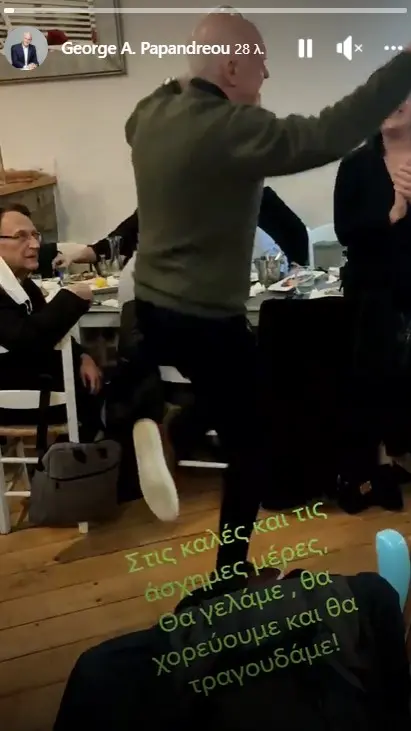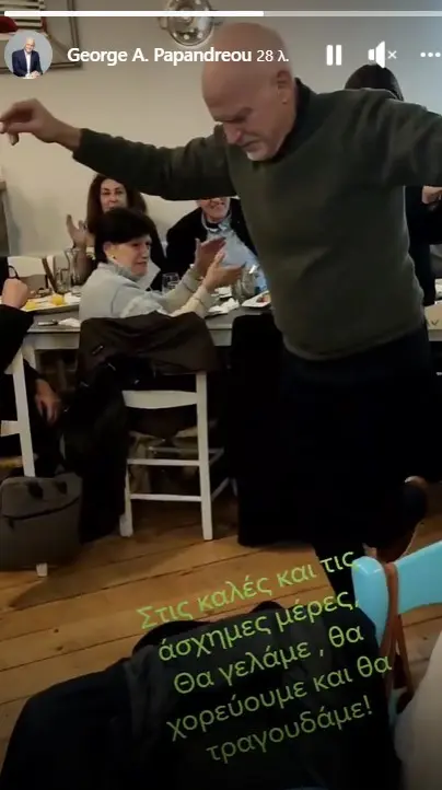 «Θα συνεχίσουμε με μεγαλύτερο πείσμα και πάθος» δήλωσε αμέσως μετά την ήττα του από τον Νίκο Ανδρουλάκη ο Γιώργος Παπανδρέου και φαίνεται πως αποφάσισε να... διασκεδάσει. Ο υποψήφιος στις εκλογές στο ΚΙΝΑΛ δημοσίευσε ένα story στο Facebook στο οποίο απεικονίζεται να χορεύει χαμογελαστός ζεμπέκικο το «Συννεφιασμένη Κυριακή». «Στις καλές και τις άσχημες μέρες θα γελάμε, θα χορεύουμε και θα τραγουδάμε», είναι το μήνυμα του ηττημένου Γιώργου Παπανδρέου που συνοδεύει το βίντεο με τον χορό.