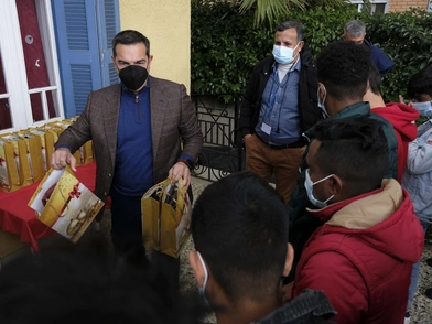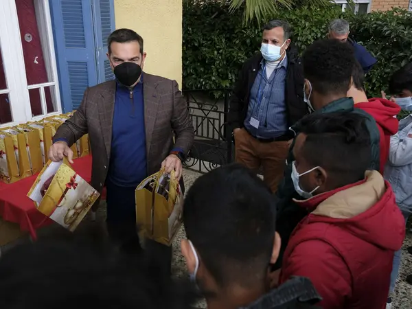 Δώρα στα παιδιά της Δομής Φιλοξενίας Ανήλικων Προσφύγων του Διεθνούς Οργανισμού Μετανάστευσης, στο Χαλάνδρι, μοίρασε ο πρόεδρος του ΣΥΡΙΖΑ, Αλέξης Τσίπρας, με αφορμή την παραμονή της Πρωτοχρονιάς.
