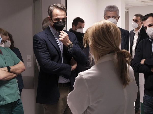 Ο Πρωθυπουργός Κυριάκος Μητσοτάκης επισκέφθηκε το απόγευμα του Σαββάτου, 1 Ιανουαρίου 2022, το Νοσοκομείο «Σωτηρία» που βρίσκεται στην αιχμή της μάχης κατά του Covid-19 και ευχήθηκε χρόνια πολλά και καλή χρονιά στους γιατρούς, τους νοσηλευτές και το προσωπικό του Νοσοκομείου που όπως κάθε μέρα, έτσι και σήμερα Πρωτοχρονιά, βρίσκονται στην πρώτη γραμμή. Ο Κυριάκος Μητσοτάκης τους ευχαρίστησε για τον αγώνα που δίνουν και εξέφρασε την ευγνωμοσύνη του για την αφοσίωση και την αυτοθυσία με την οποία στέκονται δίπλα στους ασθενείς σε αυτή την πρωτόγνωρη δοκιμασία για όλους. Ο Πρωθυπουργός συνοδευόταν από τον Υπουργό Υγείας Θάνο Πλεύρη και την Αναπληρώτρια Υπουργό, αρμόδια για τις Υπηρεσίες Υγείας, Μίνα Γκάγκα.