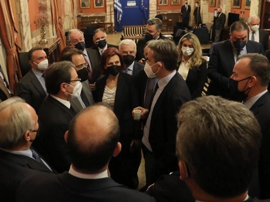Ο Κυριάκος Μητσοτάκης παρακολούθησε στην αίθουσα της Ολομέλειας την ομιλία του Υπουργού Προστασίας του Πολίτη Τάκη Θεοδωρικάκου, ενώ στο εντευκτήριο είχε χαλαρή κουβέντα με πολλούς βουλευτές της ΝΔ που βρίσκονταν εκείνη την ώρα εκεί.