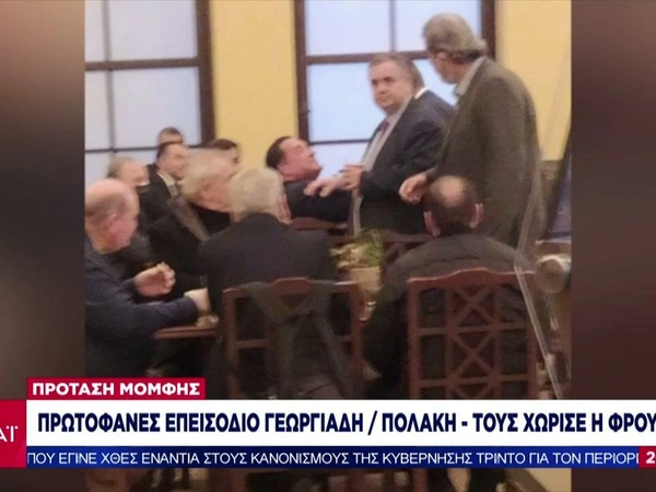 Φωτογραφία από το άγριο φραστικό επεισόδιο μεταξύ του Άδωνι Γεωργιάδη και του Παύλου Πολάκη στη Βουλή, παρουσίασε το κεντρικό δελτίο ειδήσεων του ΣΚΑΪ. Στη φωτογραφία διακρίνεται καθαρά ο υπουργός Ανάπτυξης καθισμένος με βουλευτές της ΝΔ και όρθιος δίπλα τους ο βουλευτής του ΣΥΡΙΖΑ. Οι δύο πολιτικοί συγκρούστηκαν άγρια και χρειάστηκε να παρέμβει ο βουλευτής της ΝΔ, Βασίλης Σπανάκης, για να τους χωρίσει και να αποτραπούν τα χειρότερα.