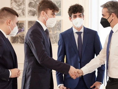 Τη μαθητική ομάδα Minders, η οποία κατέκτησε την 5η θέση στην Ολυμπιάδα Εκπαιδευτικής Ρομποτικής 2021, εκπροσωπώντας την Ελλάδα, υποδέχτηκε στο Μέγαρο Μαξίμου ο πρωθυπουργός Κυριάκος Μητσοτάκης.