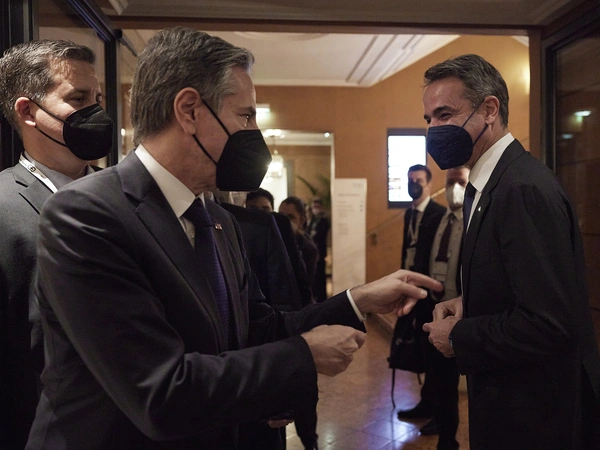 Ενδεικτική του θερμού κλίματος στις διμερείς σχέσεις με τις ΗΠΑ είναι και η ολιγόλεπτη συνομιλία καθώς και η εγκάρδια χειραψία, που είχαν στο περιθώριο των συναντήσεων τους ο Κυριάκος Μητσοτάκης και ο Αμερικανός υπουργός Εξωτερικών, Άντονι Μπλίνκεν, όπως αναφέρουν κυβερνητικές πηγές.