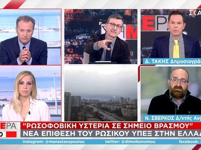 Εντονη ήταν η αντιπαράθεση ανάμεσα στον Αρη Πορτοσάλτε και τον Νίκο Σβέρκο στον αέρα του ΣΚΑΪ για τη νέα επίθεση του ρωσικού ΥΠΕΞ στην Ελλάδα και το θράσος της εκπροσώπου του, Μαρία Ζαχάροβα. Ο Πορτοσάλτε ζήτησε από τον διευθυντή του του avgi.gr να καταδικάσει τα λεγόμενα της Ζαχάροβα κι ο τελευταίος ζήτησε από τον δημοσιογράφο του ΣΚΑΪ να καταδικάσει όλες τις πολεμικές επιχειρήσεις που έχουν γίνει στο παρελθόν.