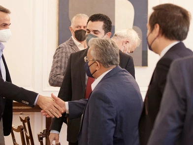 Στη σύσκεψη συμμετείχαν εκ μέρους της Κυβέρνησης, ο Υπουργός Επικρατείας Άκης Σκέρτσος, ο αναπληρωτής Υπουργός Εξωτερικών, αρμόδιος για ευρωπαϊκά θέματα και βουλευτής Β2 Δυτικού Τομέα Αθηνών Μιλτιάδης Βαρβιτσιώτης, ο βουλευτής Β2 Δυτικού Τομέα Αθηνών Γιάννης Λοβέρδος και ο Γενικός Γραμματέας Συντονισμού Θανάσης Κοντογεώργης.