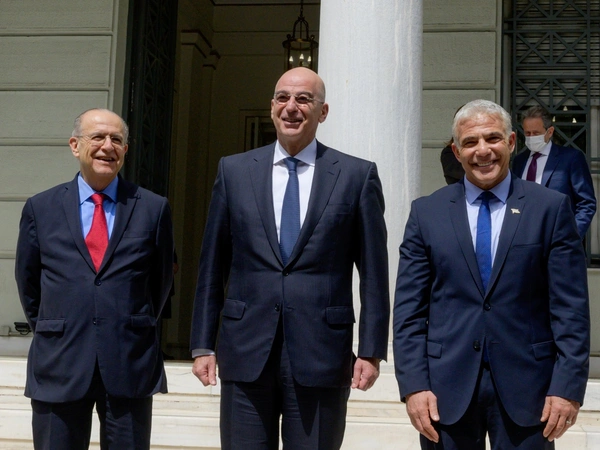 Μήνυμα για γερά θεμέλια στη στρατηγική εταιρική σχέση Ελλάδας, Ισραήλ και Κύπρου, έστειλε ο υπουργός Εξωτερικών, Νίκος Δένδιας, αναφερόμενος στο κοινό όραμα ειρήνης, σταθερότητας και ευημερίας για την περιοχή τους, μετά το πέρας της Τριμερούς Συνάντησης με τους ομολόγους του, του Ισραήλ Γαΐρ Λαπίντ και της Κύπρου Ιωάννη Κασουλίδη. Σε κοινές δηλώσεις τους, ο Νίκος Δένδιας τόνισε πως οι τρεις χώρες έχουν κοινή αντίληψη των περιφερειακών προκλήσεων και της προέλευσής τους και γι' αυτό τον λόγο πιστεύουν ότι η εταιρική αυτή σχέση έχει μια σημαντική δυναμική.