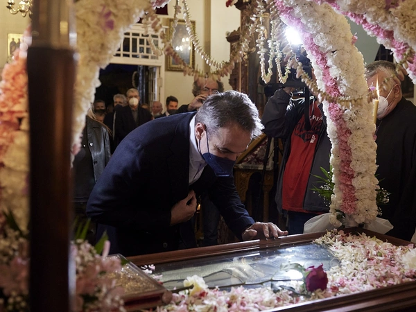 Την ακολουθία του Επιταφίου στον Ιερό Ναό Αγίου Νικολάου στο Μεϊντάνι Χαλέπας παρακολούθησε απόψε ο πρωθυπουργός Κυριάκος Μητσοτάκης. Τον πρωθυπουργό υποδέχθηκε στην είσοδο του ναού ο δήμαρχος Χανίων Παναγιώτης Σημανδηράκης. O κ. Μητσοτάκης συνοδευόταν από μέλη της οικογένειάς του, ενώ την ακολουθία του Επιταφίου παρακολούθησαν ακόμα, με τις οικογένειες τους, η βουλευτής Ντόρα Μπακογιάννη και ο δήμαρχος Αθηναίων Κώστας Μπακογιάννης.