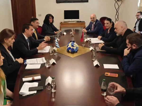 Ο κ. Σκρέκας συναντήθηκε στα Τίρανα με τον πρωθυπουργό της Αλβανίας, Έντι Ράμα, και την υπουργό Υποδομών και Ενέργειας, Μπελίντα Μπαλούκου, τους οποίους ενημέρωσε για τις νέες υποδομές φυσικού αερίου που θα υλοποιηθούν στην Ελλάδα, με τις οποίες θα τριπλασιαστεί η αποθηκευτική δυναμικότητα της χώρας σε LNG.