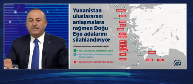 Η «Γαλάζια Πατρίδα» των Τούρκων, περιλαμβάνει τα νησιά του Ανατολικού Αιγαίου, εκείνα που τις τελευταίες ημέρες η ηγεσία της Τουρκίας έχει επαναφέρει στην επικαιρότητα, ζητώντας την αποστρατικοποίησή τους. «Η Ελλάδα έχει υποβαθμίσει το καθεστώς των νησιών και πρέπει να τα αφοπλίσει, διαφορετικά θα ξεκινήσει η συζήτηση για την κυριαρχία» δήλωσε μόλις χθες ο Μεβλούτ Τσαβούσογλου την ώρα που δίπλα του «έπαιζε» ο χάρτης που έδειχνε τα ελληνικά νησιά του βορειονατολικού Αιγαίου καθώς και τα Δωδεκάνησα «μαρκαρισμένα» από τους Τούρκους.